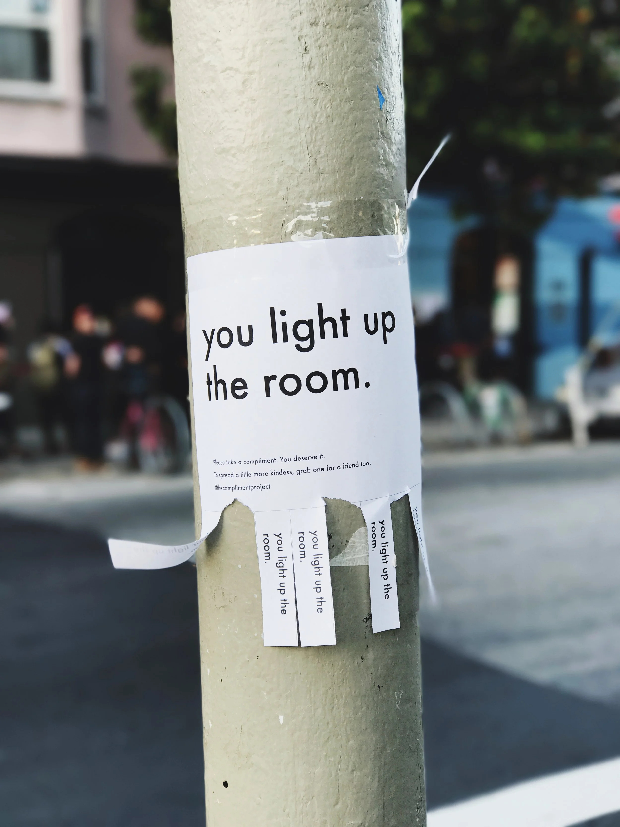 "Take A Compliment" is an extension and re-imagination of The Compliment Project. It's a beautiful and inspiring collection of 50 tear-away posters published by Chronicle Books.